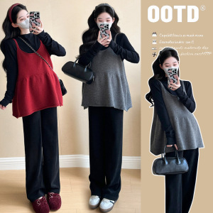 孕妇秋装新款时尚打底衫上衣甜美吊带衫+孕妇休闲裤甜美显瘦套装