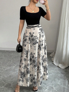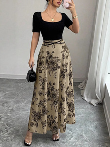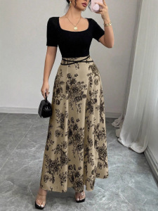 2025跨境外贸 女式连衣裙夏季新款设计感外穿纯色显瘦法式碎花长