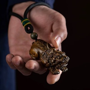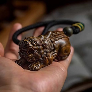 绿檀新款龙头铜钱招财貔貅 约7cm 送手绳