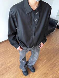 2025春暗黑设计感宽肩飞行夹克男女简约翻领长袖时髦短款宽松外套