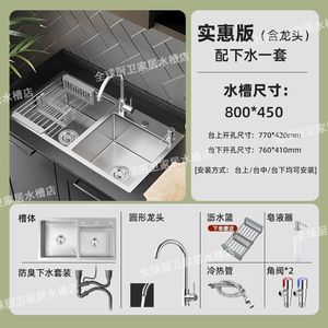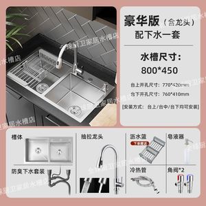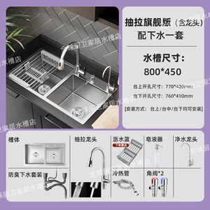 【加厚双槽】80*45- 耐磨防锈款-【拉丝款】抽拉龙头+净水龙头