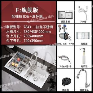 【加厚双槽】75*41 -耐磨防锈款-【拉丝款】抽拉+净水+洗杯器