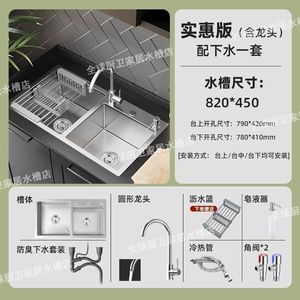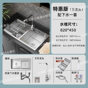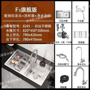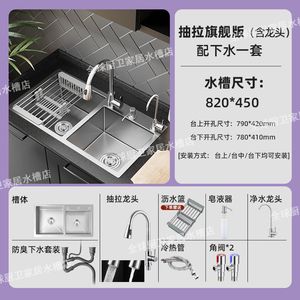 【加厚双槽】82*45- 耐磨防锈款-【拉丝款】抽拉龙头+净水龙头
