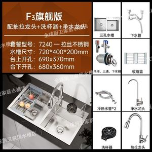 【加厚双槽】72*40- 耐磨防锈款-【拉丝款】抽拉龙头+净水龙头