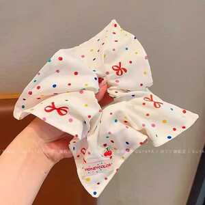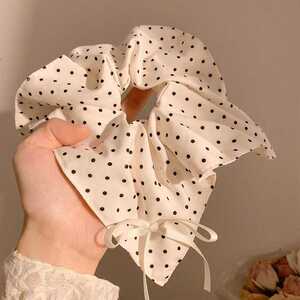 米白波点蝴蝶结发圈