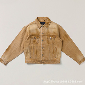 SMFK十字雕像荒野焰火牛仔夹克设计感磨色手工涂旧外套上衣25女秋