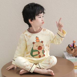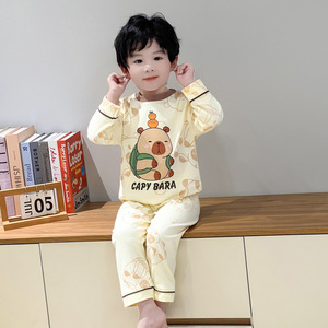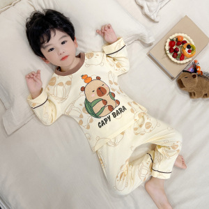 2025新款男童睡衣春秋季纯棉长袖韩版宽松儿童卡通男孩家居服套装