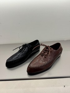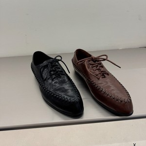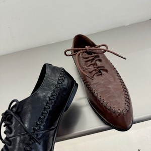 欧洲站XJ女鞋25秋冬时尚经典款超柔软软胎牛皮尖头系带平底乐福鞋