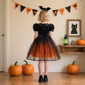 万圣节儿童服装女童礼服魔法女巫吸血鬼连衣裙小女孩舞会演出服装