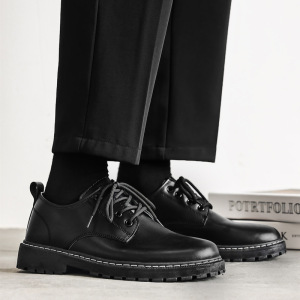 夏季工作男鞋休闲皮鞋男厨房上班防水防滑防油黑色马丁劳保厨师鞋