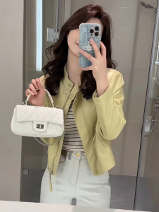 韩版高级感立领小皮衣外套女2025春季新款小个子时尚百搭短款上衣