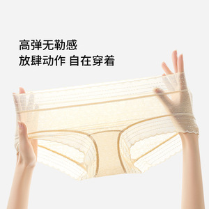网纱蕾丝女士内裤10A抗菌蚕丝加长裆无痕弹力包臀速干纯欲女内裤