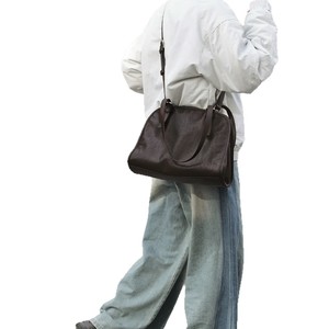 植鞣牛皮元宝保龄球包女复古托特包通勤包包大容量单肩斜挎包灰软