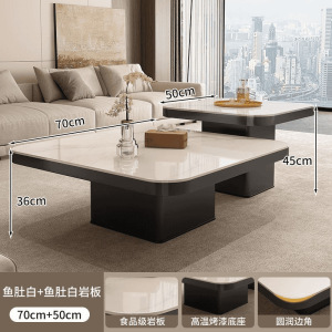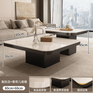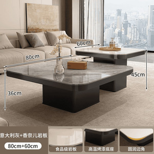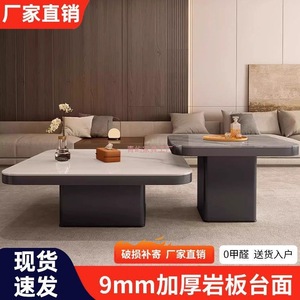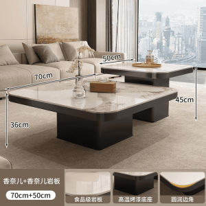 茶几轻奢现代小户型极简正方形茶几岩板黑色组合茶几可移动高级感