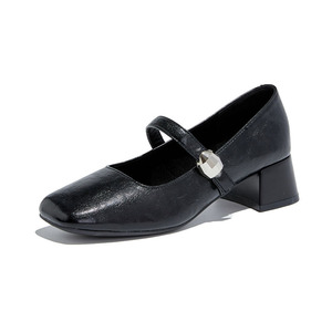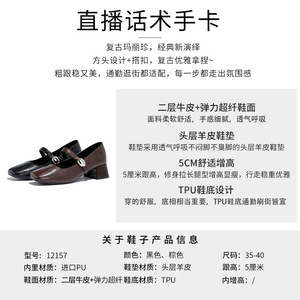 头层羊皮鞋垫玛丽珍鞋女2025秋季新款粗跟一字带法式单鞋真皮女鞋