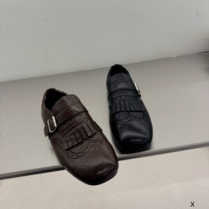 欧洲站XJ女鞋25秋时尚流苏松紧口头层牛皮圆头系带平底乐福鞋板鞋