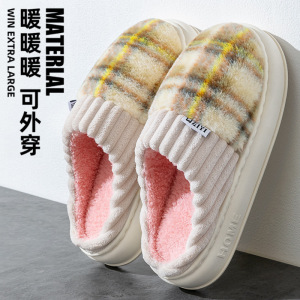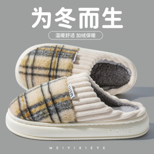 时尚居家棉拖鞋女士秋冬季2025新款防滑加绒保暖彩色条纹款棉拖鞋