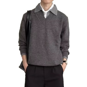 2025感假两件毛衣秋冬季打底轻熟风宽松百搭撞色学生针织衫潮