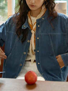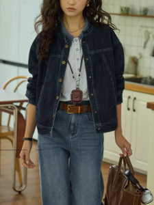 【新品】soligther法式复古小立领牛仔夹克外套女秋季