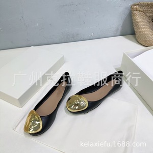 高端2025新款真皮圆头黄金片五金扣配饰平底玛丽珍鞋单鞋小皮鞋女
