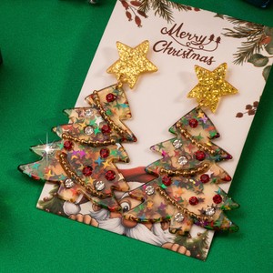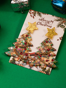 圣诞节卡通可爱星星圣诞树麋鹿耳环亮片火烈鸟耳坠嘻哈小众耳饰女