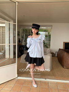 CZ ZHANG秋韩版甜美一字花边领纯色两面穿质感百搭小衫女B33168