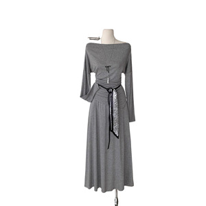 设计感韩版休闲两件套装裙2025秋季新款简约一字肩上衣高腰半身裙