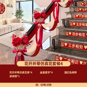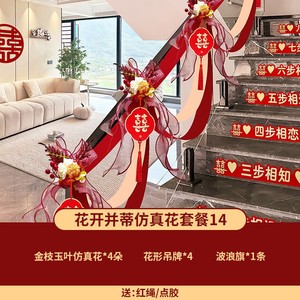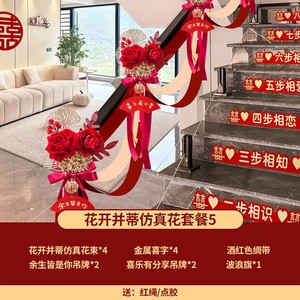 结婚楼梯扶手装饰婚房布置套装婚礼台阶拉花扶梯仿真花婚庆用品