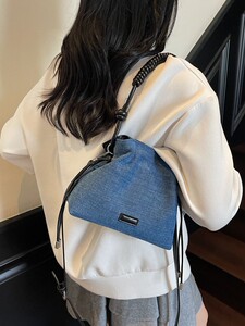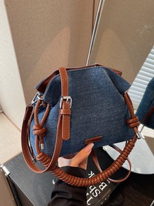 外贸牛仔布手拎包包女式2025新款小众超火单肩包斜挎水桶包手机包