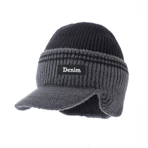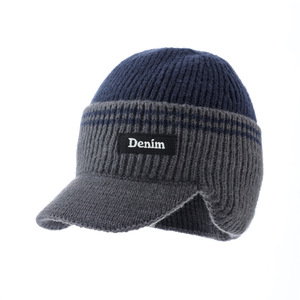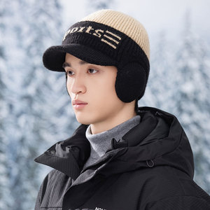 加绒毛线帽子冬季男士户外保暖耳包护耳针织帽骑行出游防寒鸭舌帽