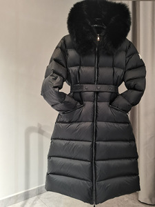 「秋冬新款」蒙家Boed长款女士黑天鹅纯色毛领连帽收腰保暖羽绒服