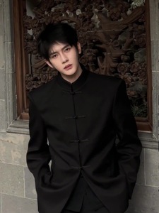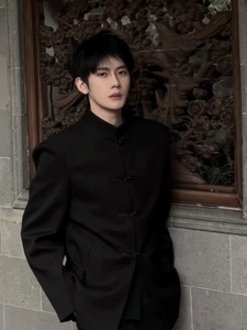 复古新中式盘扣立领西装男小众流苏皮绳拼接设计感痞帅中山装外套