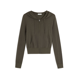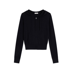 TH~ROW 小众三色经典基础款软薄绵羊毛连帽拉链弹力针织开衫外