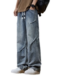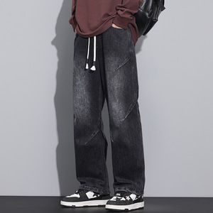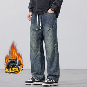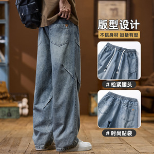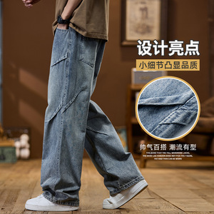 美式高街牛仔裤男生vibe秋季皱褶高级感直筒宽松男款弯刀休闲裤子