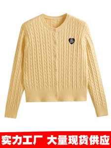 包芯纱面料 黄色开衫女装2025新款针织外套短款外搭韩系早秋上衣