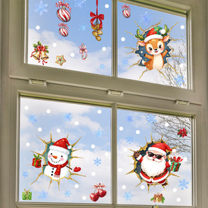 DH032欢乐圣诞节创意破窗卡通Q萌静电贴节日派对店铺橱窗玻璃窗贴