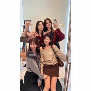 秋冬毛衣卡其色心机纯欲风一字肩露肩针织衫女感慵懒内搭上衣