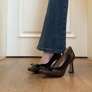 羊皮版~复古文艺风气质通勤百搭粗跟高跟鞋女时尚优雅蝴蝶结单鞋