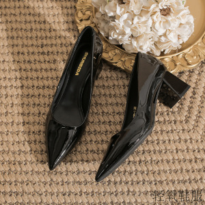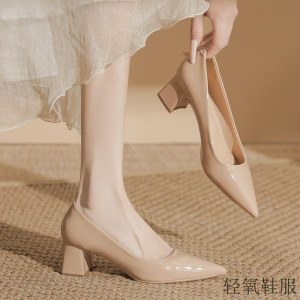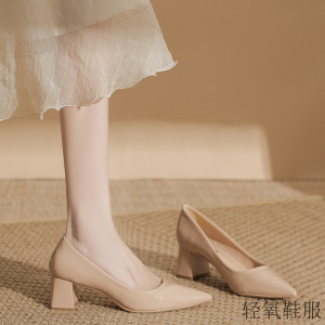 法式尖头超软高跟鞋2025春秋新款不累脚面试职业鞋浅口粗跟单鞋女