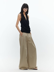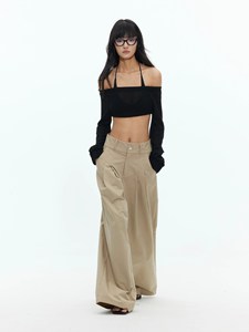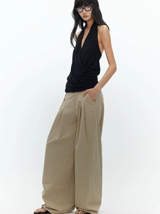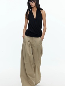 BUZHOU 25SS"老钱精英风"低腰质感春夏卡其有褶阔腿直筒拖地长裤