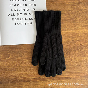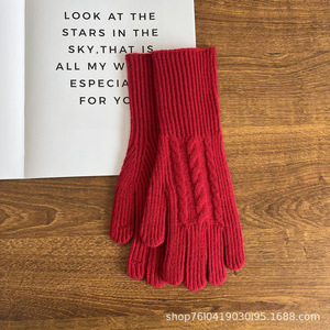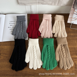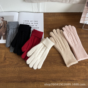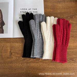 25新款韩系复古麻花针织手套冬季保暖露指可触屏百搭女士毛线手套