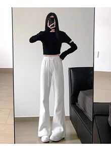 深灰色喇叭裤女秋冬季2025新款高腰小个子垂感运动休闲加绒微喇裤