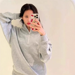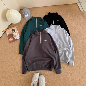 秋冬季新款alo金智秀同款加绒立领半拉链情侣半拉链宽松运动上衣