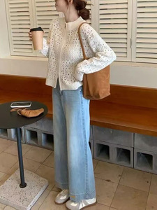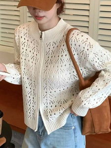 秋新款韩系镂空钩花开衫外套薄款慵懒ins风上衣外套女