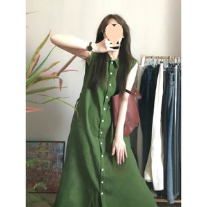 绿色无袖衬衫连衣裙女夏季新款高级设计感宽松显瘦系带气质长裙子