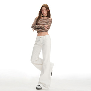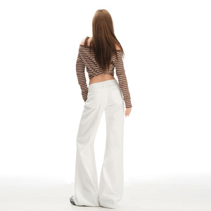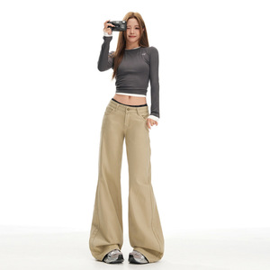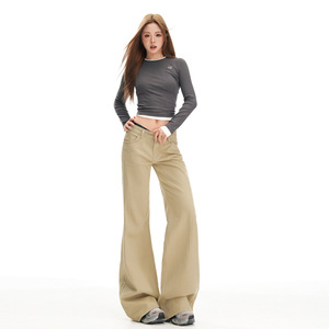 稚橘#卡其色气质不贴腿微喇牛仔裤女低腰显瘦遮肉时尚百搭喇叭裤