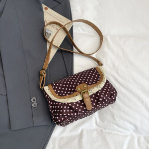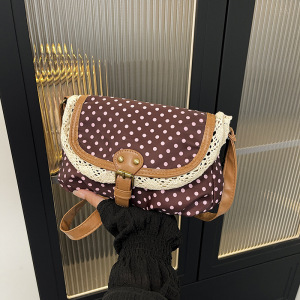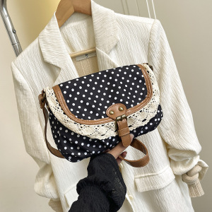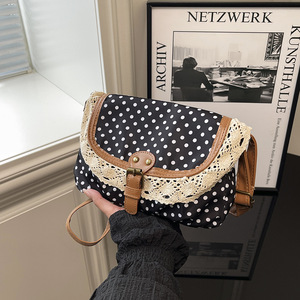 2025秋季复古波点斜挎包洋气亲子女童口红配饰包甜美蕾丝小方包