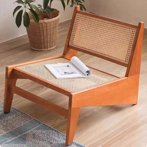 北欧实木藤编椅子休闲阳台诧寂风昌迪加尔袋鼠民宿日式懒人藤编椅
