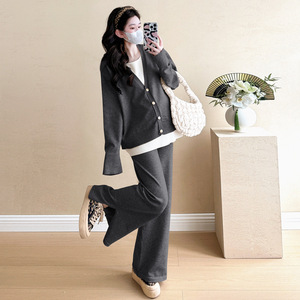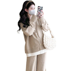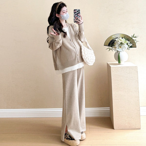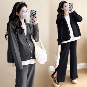 网红孕妇装2025早秋季新款休闲时尚减龄款宽松假两件针织毛衣套装