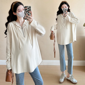 孕妇连帽卫衣女2025春秋新款时尚洋气大码宽松百搭连帽套头上衣服